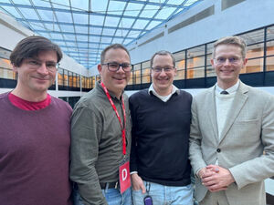 v. l. n. r.: Markus Dosch (Kreisvorsitzender), Christian Gaus (Vorsitzender SPDqueeer BW), Sascha Brüning (stellvertretender Vorsitzender SPDqueer BW), Julius Siebert (stellvertretender Bundesvorsitzender SPDqueer)