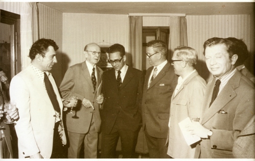 Zum politischen Treff- und Mittelpunkt entwickelte sich ab September 1971 die neugegründete SPD-Kreisgeschäftsstelle in Mosbach am Kirchplatz. Zur Einweihung kam Entwicklungshilfe-Minister Erhard Eppler und MdB Klaus Richter. Das Foto zeigt (v.l.) den Kreiskassierer Heribert Becker (Obrigheim), den Ehrenkreisvorsitzenden Fritz Lingenberg (Mosbach), Minister Erhard Eppler, den Limbacher Ortsvereinsvorsitzenden Otto Kohl, den Mosbacher Ortsvereinsvorsitzenden Ewald Linek und MdB Klaus Richter.