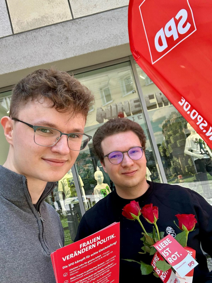 Zum Weltfrauentag verteilte die SPD in Mosbach Rosen, um ein Zeichen der Anerkennung zu setzen und auf die weiterhin bestehende Ungleichheit in der politischen Repräsentation von Frauen hinzuweisen.