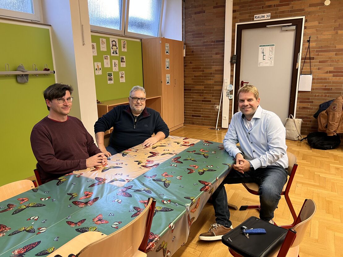 Dabei war es dem Ortsvereinsvorsitzenden Markus Dosch und Torsten Fahrbach wichtig über die aktuellen Herausforderungen in der Schullandschaft zu sprechen, die Stellung der Hauptschulen und vor allem über den aktuellen Stand an der Baulandschule selbst.